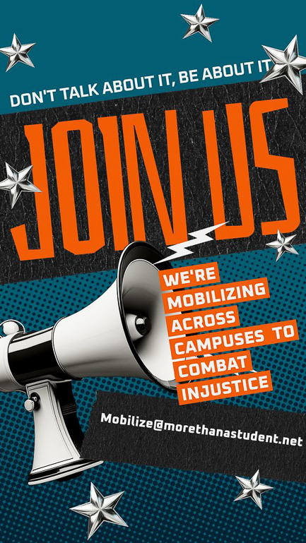 More-Than-A-Student is the informational resource for sharing information, communications, and mobilizing. It's here to serve a cross-campus and cross-cultural effort led by students at colleges and universities. While rooted in Southern California, the goal is to expand these efforts to include students nationwide. Our Mission is to combat social injustices by peacefully and collectively championing the cause of liberty and freedom for all with strength of spirit and a firm resolve. Our vision is to realize that all people indiscriminately share in the promise of democracy and have the freedom and liberty to pursue their dreams and aspirations.
